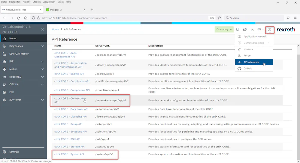 See also the blog post "Using the REST API of ctrlX CORE [DOCU] - [VIDEO]" in our ctrlX AUTOMATION Community for some general information.