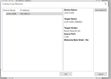 When I scan the network through the Weintek device settings scan utility it shows:
