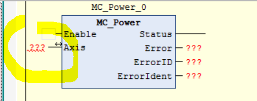When drives only are connected as an IO you cannot use the standard motion function blocks like MC_Power. These are interfaces to the motion runtime. You will have to handle the control and status word as well as the set frequency/speed by hand.