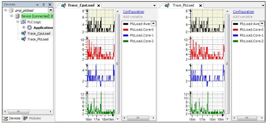 I just found this picture in the ctrlX PLC Engineering software manual on page 282. In the attached picture, you can only see graphs of the average PLC load and the PLC load of the three cores. I'm wondering, if it's possible to get more detailled information about the CPU load?Â