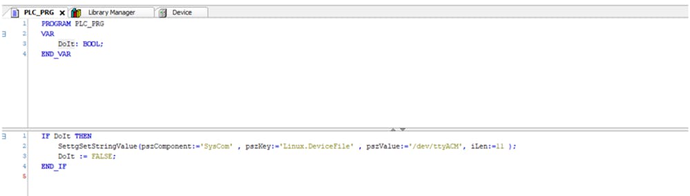 I am trying to make a PLC-program read a barcode scanner connected to the CORE via the USB connection. For this, I am using the SysCom library and wants to add the connection /dev/ttyACM1 as COM1 in the PLC. However, I can not edit plc_system.cfg to add this port. It is write protected in the web-interface.