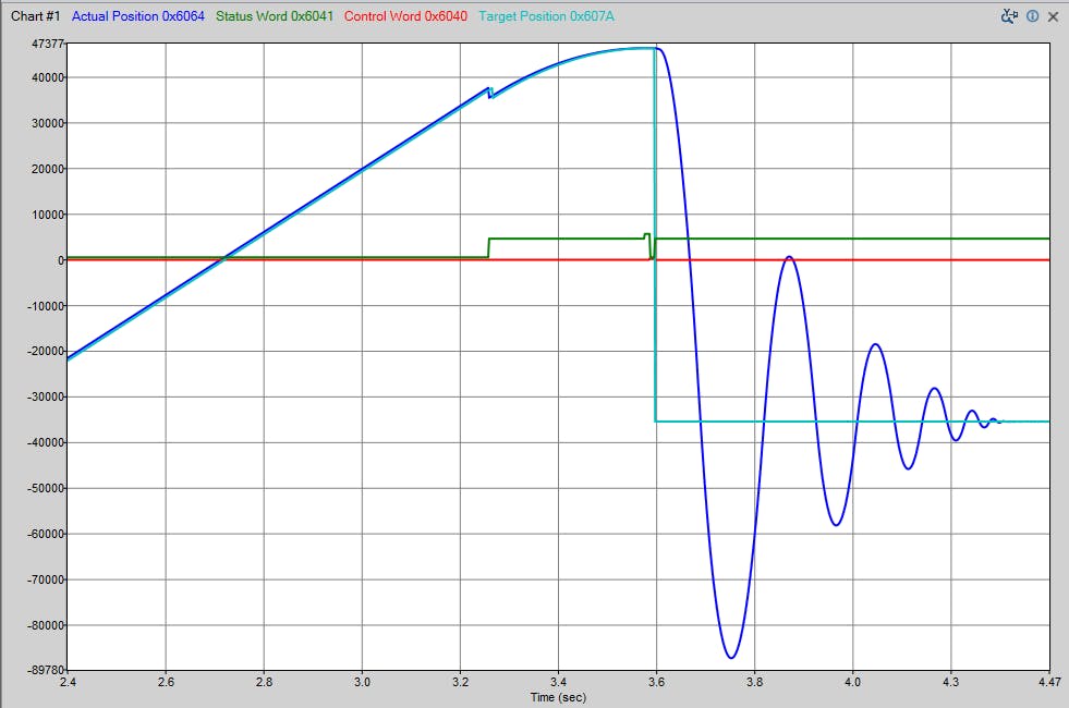 I've encountered an issue with the behavior of the MC_Home function block that raises some concerns. At the end of the homing sequence, the axis begins to oscillate, indicating a form of instability. Based on my observations, this seems to result from a mismatch between the Target Position and the Actual Position. It appears that the Actual Position is being updated with the value set by the Input Position while the axis is still in motion, leading to a loss of synchronization and resulting in unstable behavior.