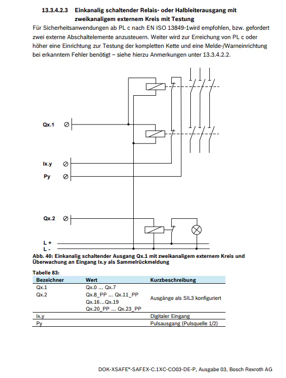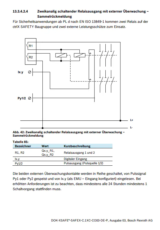 With the other outputs of the CtrlX Safety, the maximum PL = C is achieved according to section 13.3.4.2.3.