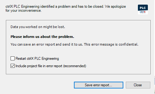 Crash with ctrlX Works. see image in attach.