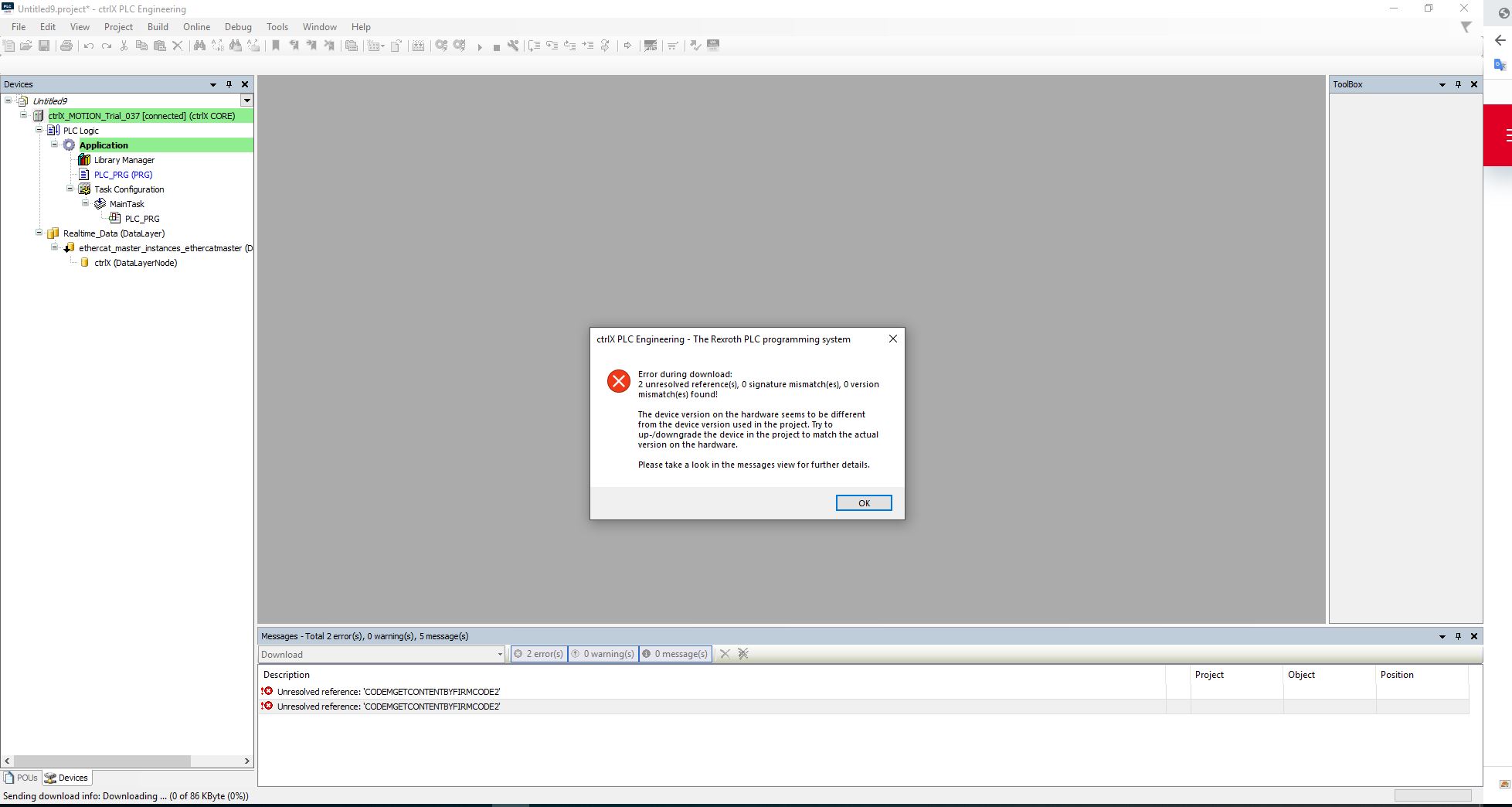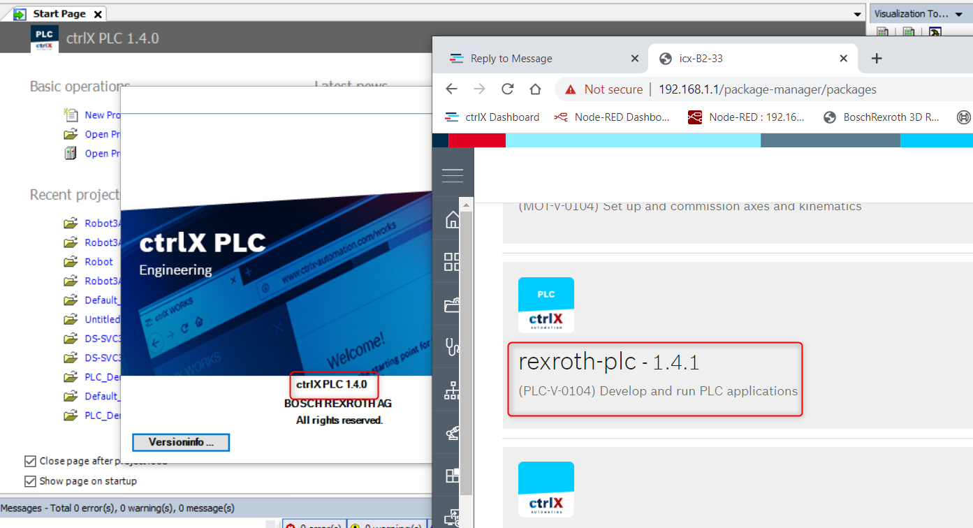When I click the login button of ctrlX PLC Engineering, it got the error showed that the device version were different between project and actural version on hardware.(attached pic)
