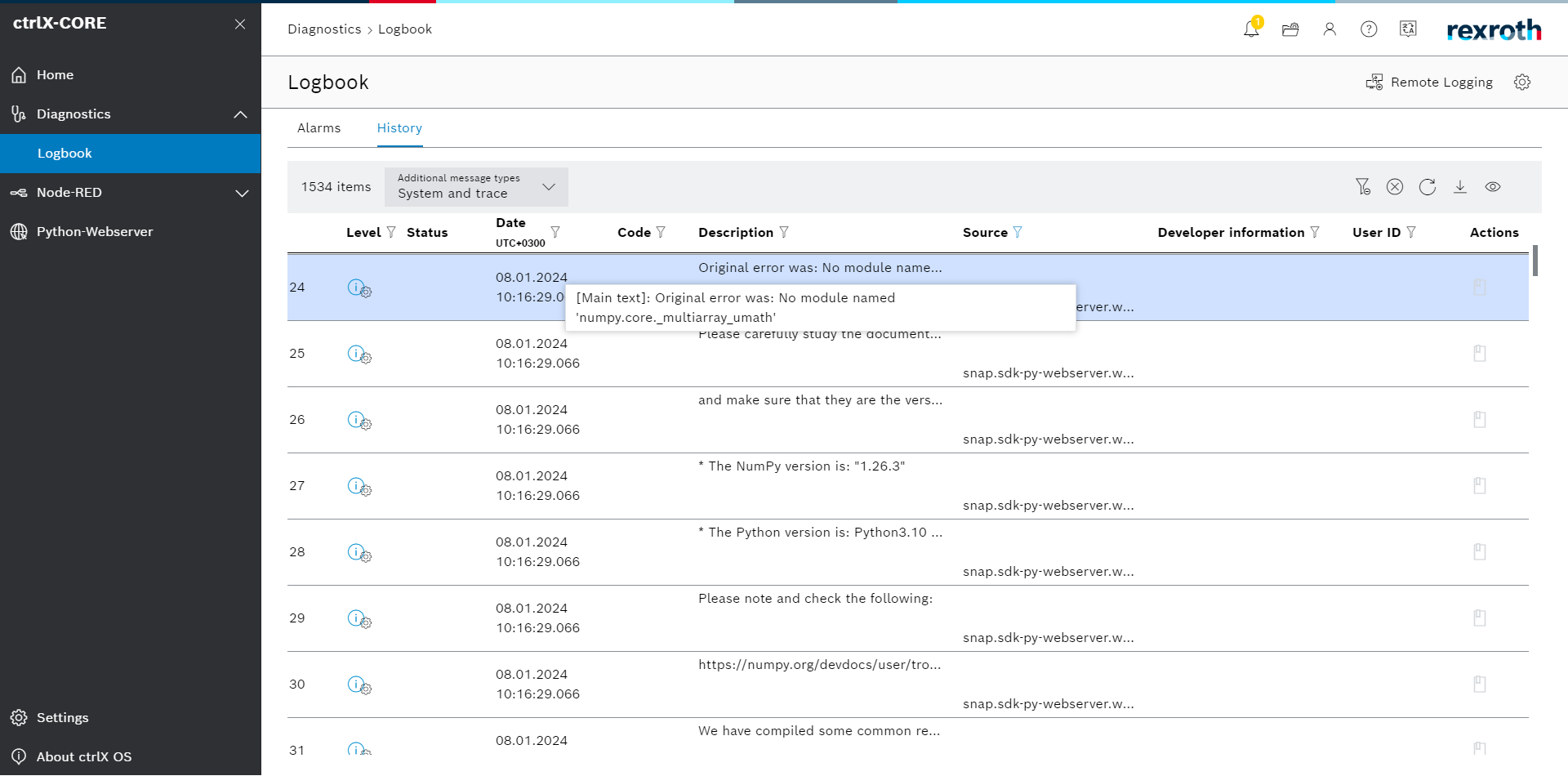 I'm building an arm64 snap with OpenCV library by modifying SDK sample code, but keep getting an import error "No module named 'numpy.core._multiarray_umath'".