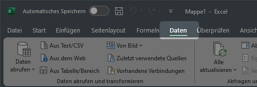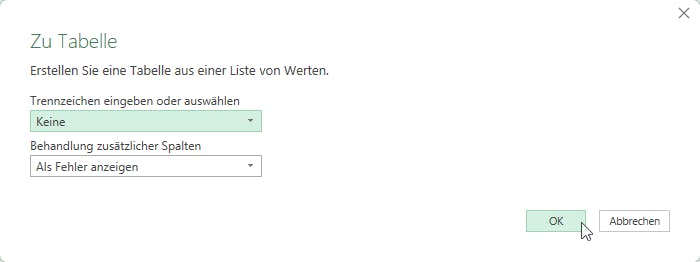 Excel will now drill down into this data. You will see the underlying structure. Click there to "Convert to Table" ("Zu Tabelle konvertieren")