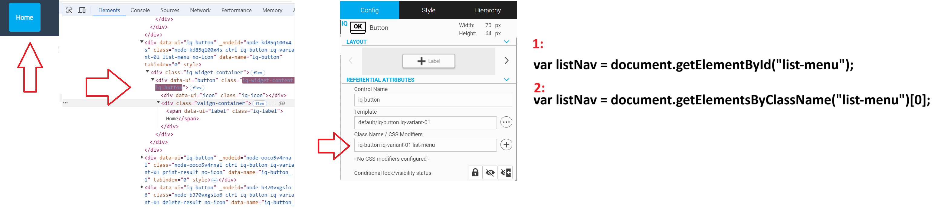 Q2: What should I set the WebIQ Config page of the button to call the ClassName or ID: